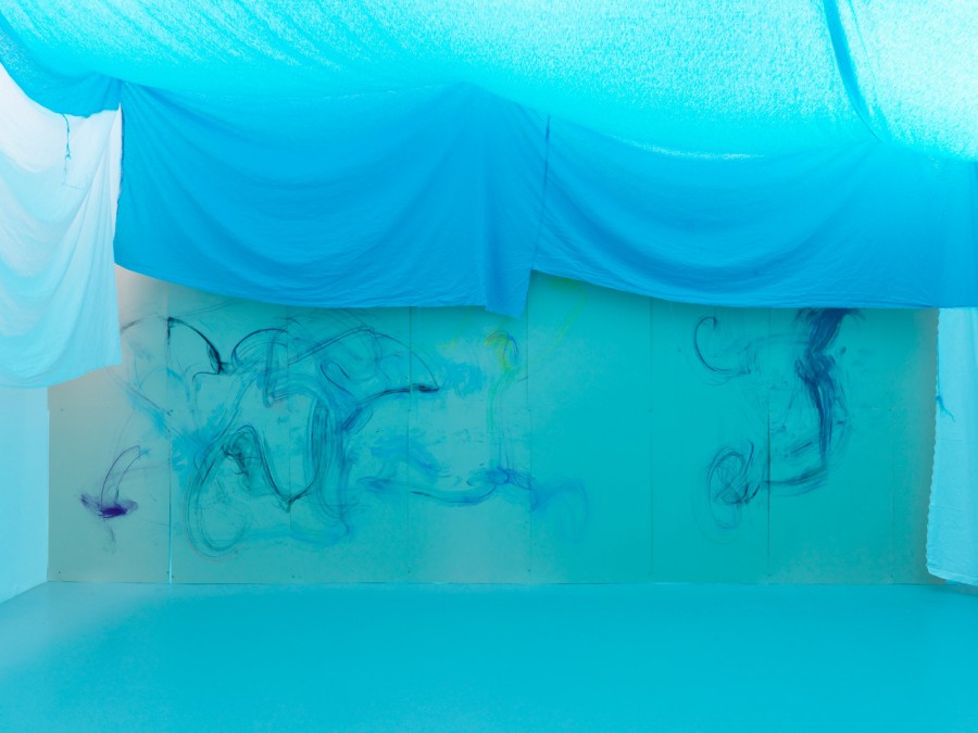In Zustand der Intensivierung überführt Reto Pulfer im Kunstverein Nürnberg seine Beschäftigung mit der Beobachtung der Sterne und anderer astronomischer Phänomene in eine spezifische Zeit- und Raumerfahrung. Ausgehend von der energetischen Bewegung des Naturereignisses einer Supernova schafft Pulfer in assoziativer Weise Rauminszenierungen, welche die gegensätzlichen Zustände der Anspannung und der Entspannung adressieren. Indem sich Pulfer mit dem ambivalenten Begriff des „Zustands“ beschäftigt, fordert er nicht nur die Begrenzungen sprachlicher Zeichen und ihrer Bedeutung heraus, sondern reflektiert die Wahrnehmung seiner Arbeiten selbst, die stets unbeständige Situationen entwickeln: Diese schafft er durch die Wahl von flexiblen und temporären Materialien wie von Hand gefärbten und genähten Textilien, gefundenen Bettlaken, Papier und Holz sowie durch Grenzüberschreitungen medialer Arbeitsweisen in Malerei, Sprache, Zeichnung, Installation und Performance.