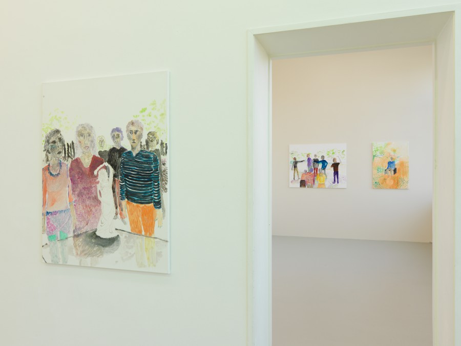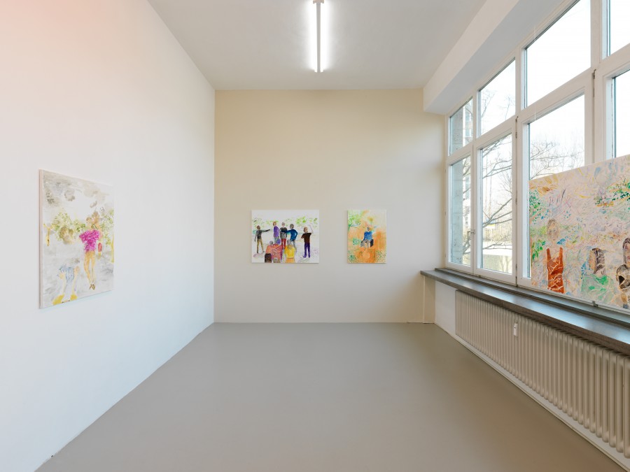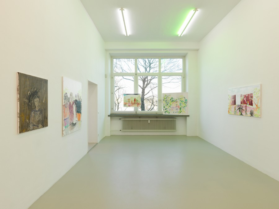 Lea von Wintzingerode (*1990, Bayreuth, DE) verfolgt in ihren figurativen Bildern eine intensive Reflexion über das Medium Malerei. Ihre Werke eröffnen imaginäre architektonische und körperhafte Konstellationen, die den Blick des Betrachters stets involvieren und damit subtil dekonstruieren. In ihrer ersten größeren Einzelausstellung präsentiert sie Arbeiten, die alle während ihres fünfmonatigen Aufenthalts im Rahmen des Marianne-Defet-Malerei-Stipendiums in Nürnberg entstanden sind. Im Zusammenhang mit dem Stipendium ist an der Eröffnung die Publikation Lea von Wintzingerode – Young Team erschienen, mit Texten von Jutta Koether, Christiane Rekade und Simone Neuenschwander.