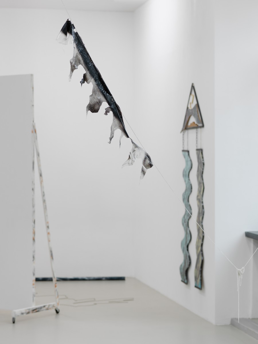 In his first major institutional solo exhibition, Daniel Kiss (b. 1984, Roth, Germany; lives in Cologne) pursues at the Kunstverein Nürnberg – Albrecht Dürer Gesellschaft his ongoing interest in the affective impacts of pop cultural signs, symbols and codes. An important aspect of his approach is the examination of social notions of value and how these shift between emotional and economical attributions. In his works, he often scrutinises the changeable legibility of symbolic and tangible qualities through temporal, fragile materials such as paper, foil, wood and textiles, whereby visual strategies of surface textures and manual production methods always remain visible.