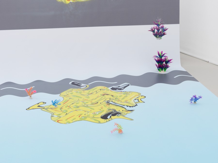 Using the artificial form of the bonsai plant as a point of departure, Catherine Biocca addresses in the exhibition various meta-levels of perceiving reality and their possible intensification. In her digitally animated video clips, spatial installations and sculptures, she focuses on the reciprocal movements of facticity and manipulation, destruction and reconstruction, mishap and control. She is particularly interested in human communicative behaviour and its constellations, which she has explored through detailed observations of Internet culture, comics and cartoons as well as her research of art history. How society deals with violence – as explicit and implicit non-verbal acts – and our capacity for empathy often stand at the centre of her investigations. She examines turning points in humour and the psychological manifestations of “Schadenfreude”. Her works thereby reflect the process of identity formation as a constant balance between competition and compliance in relation to others.