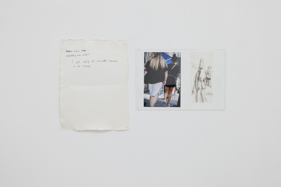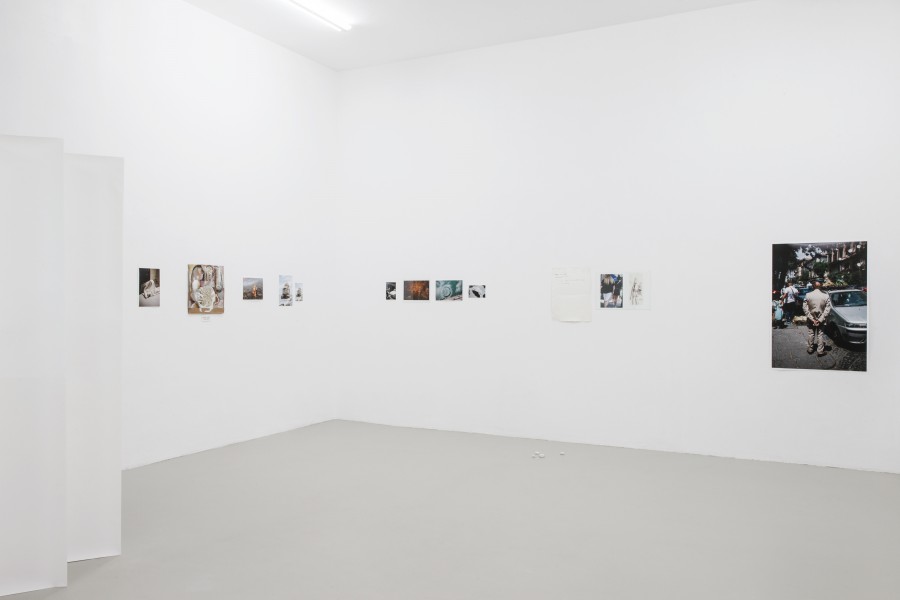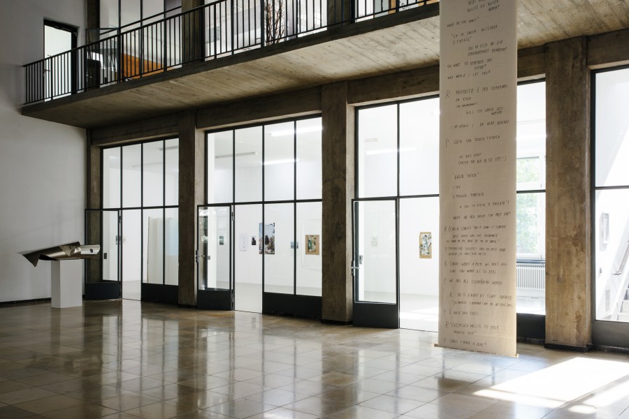 Then I would like to make a happy end for once is an exhibition for the Kunstverein Nürnberg, based on a dialogue that began two years ago in Rome between photographer Verena Kathrein and artist and author Ariane Müller. The exhibition is partly an exploration of the medium of photography—its presence and its decision for the moment—and it is partly an interweaving of two fields, namely comedy and feminism. The research touches on two people or figures: Italian feminist Carla Lonzi, who founded the Rivolta Femminilewith artist Carla Accardi in the seventies as well as the figure of the Pulcinella, who represents the city of Naples in the Commedia dell’arte and was the subject of a 2015 book by Giorgio Agamben. The joint reading and translation of Lonzi’s Diario di una femminista and Agamben’s Pulcinella ovvero divertimento per li regazzi—neither of which had yet been translated into the German—served as the starting point of research that had the goal of finding images of something that is either too sad to be said aloud or too funny to be pronounced. Weeping and laughter populate the margins of language, where it dissolves into the impossibility of saying something and therefore describes a feeling of involuntary imprisonment in a drama of social positions of the other based on attributed, inescapable differences.