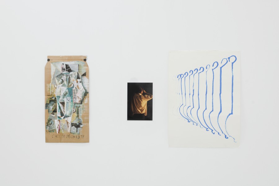 In Then I would like to make a happy end for once, the photographs are now what occurs exterior to the photographer in encountering these thoughts, while the other works were made in the interior space and without reference to time. All media can now either be a disruptive element or a plot line, which, rather than carrying the plot forward, cracks it’s own, medium-specific jokes. Here, the painterly form of cubism marks a confrontation between the emergence of a separate perspective, which developed as a type of secret language between two people against the perspective of renaissance painting. This is a form that paradigmatically represents the incomprehensibility of the avant-garde, used in, for example, Donald Duck magazines. Underlying this new perspective is the wish—the possibility—of moving and exhibiting in the space and making everything—table, guitar, bottle—into a present body (for the most part a feminine one), lending it three-dimensionality and presence. Historically, cubism emerged from an examination of the two-dimensionality of photography and the multi-dimensionality of Charlie Chaplin films. Today it recalls the under-complexity of the “third table” of speculative realism, which itself represents a kind of Pulcinella of philosophy—get the hell out of here!