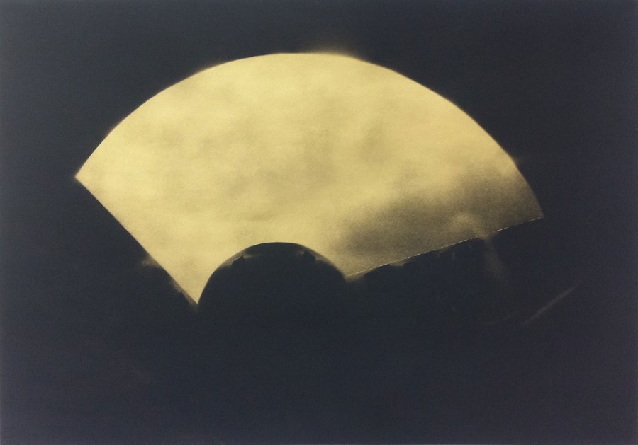In seinen Computergrafiken, Papierarbeiten, Fotografien und Skulpturen überführt Michael Hakimi (*1968 in Eutin, lebt in Berlin) Zeichen und Codes der Alltagswelt europäischer, aber auch iranischer Kultur, sowie der hier anzutreffenden Architektur in abstrakte, ornamentale Formationen. Von einfachen Kopiertechnikverfahren bis hin zu komplizierten, am Computer hergestellten Bildkompositionen werden Flächen und Linien auf eine Weise in Relation gesetzt, sodass sie ein Zusammenspiel von perspektivischen Räumen mit Linien, Vektoren und Flächen ergeben. Viele seiner Arbeiten sind zudem von Prozessen mit dem jeweiligen Material geprägt, wie beispielsweise dem Papier, das gerissen, geknüllt oder gefaltet wird. In Ausstellungen setzt der Künstler zwei- und dreidimensionale Bilder zueinander in Beziehung und eröffnet Bildräume, als vollzöge er mit den einzelnen Elementen selber Zeichnungen im Raum.Als Jahresgabe hat uns Michael Hakimi mit einer Schablone und goldener Sprühfarbe hergestellte Arbeiten gefertigt, bei denen, wie in vielen seiner Werke, die Negativform eines Abdrucks zur Hauptfigur wird. Wie im Titel bereits erkenntlich, lässt die Form an die sich abbildende Spur der Bewegung eines Autoscheibenwischers denken. Stellt man sich jedoch einen Kopf darunter vor, kann man mit der goldenen Malerei ebenso den Ausschnitt eines Nimbus’ assoziieren.