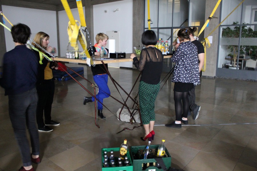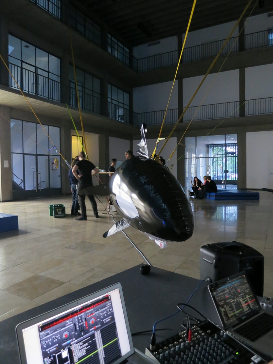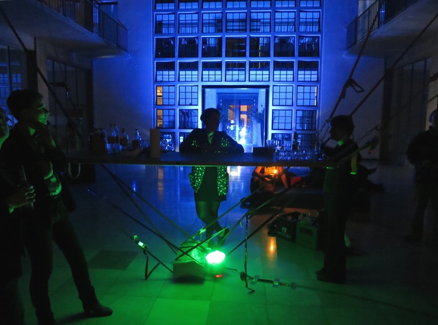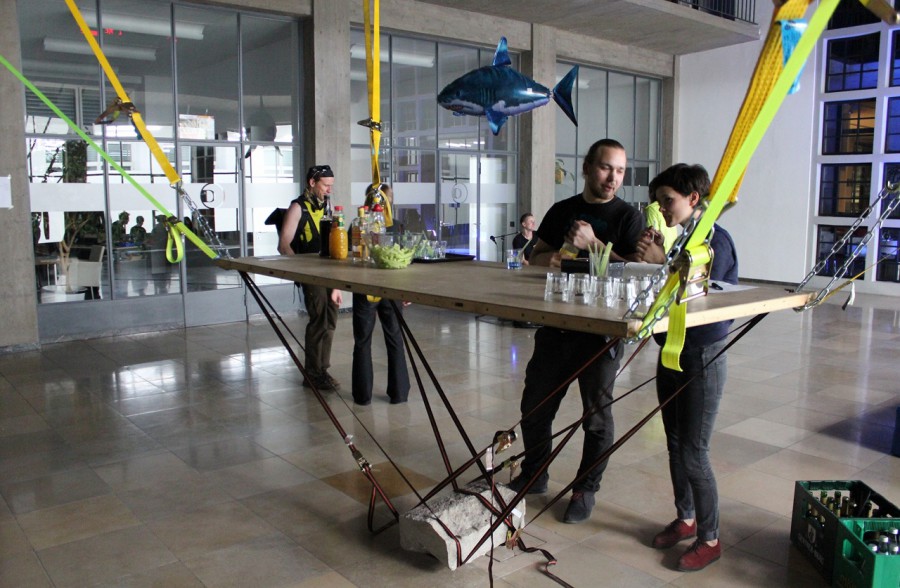 Installation von Studierenden der Klasse Michael Hakimi, Akademie der Bildenden Künste Nürnberg, in der großen Halle des Milchhofs.